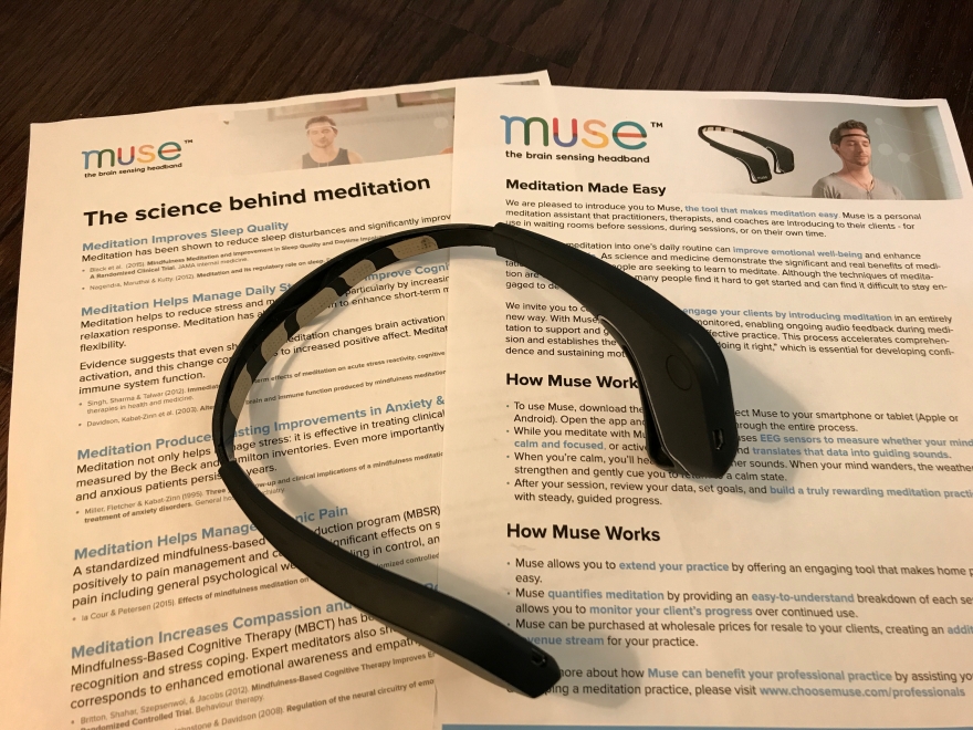 The Mindfulness Room available to your clients before and after sessions. Your clients can practice mindfulness, centering prayer, write their intentions or aspirations, use the MUSE Neuro-biofeedback headband to build mindfulness skills, or decompress using the guided meditations or gel pens and adult mandala coloring books